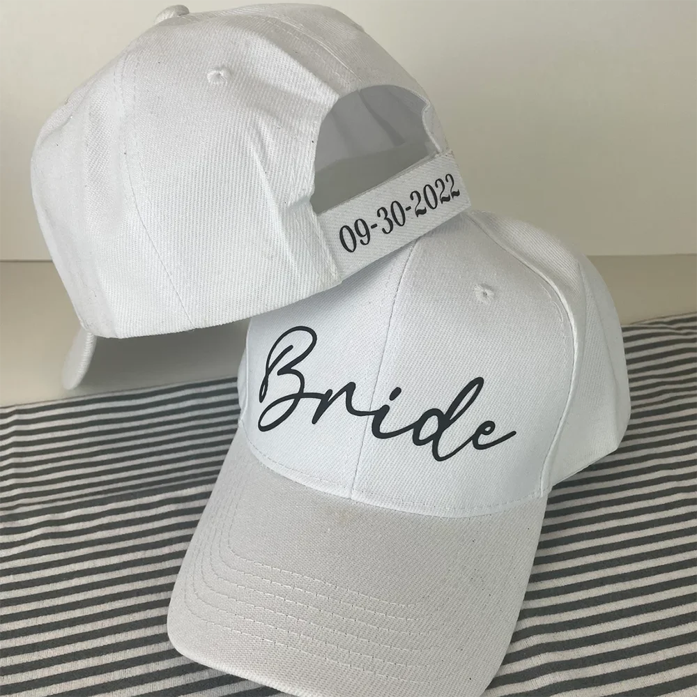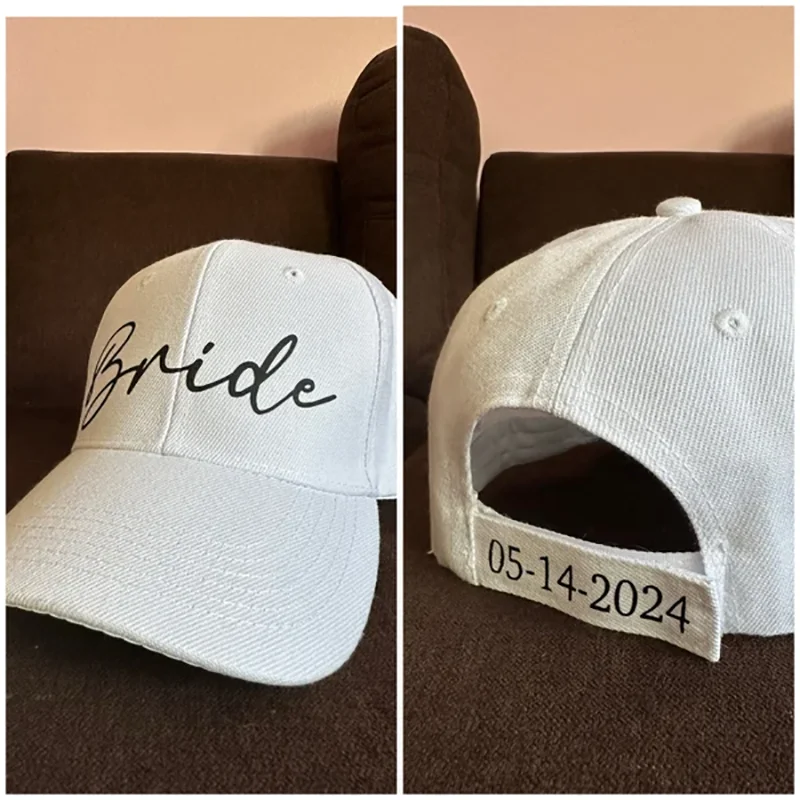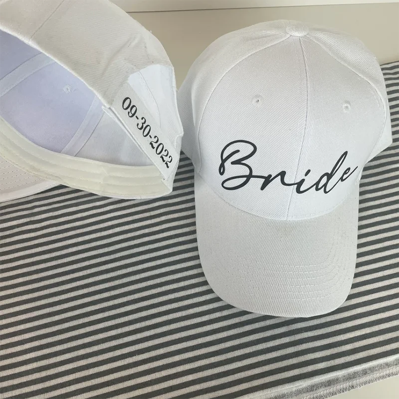 כובע הכלה הלבן שלנו הוא בדיוק מה שאת צריכה! בעיצוב קלאסי, נוח ללבישה, ובעיקר – עם מיתוג אישי שכולל את שם הכלה ותאריך החתונה שלך.