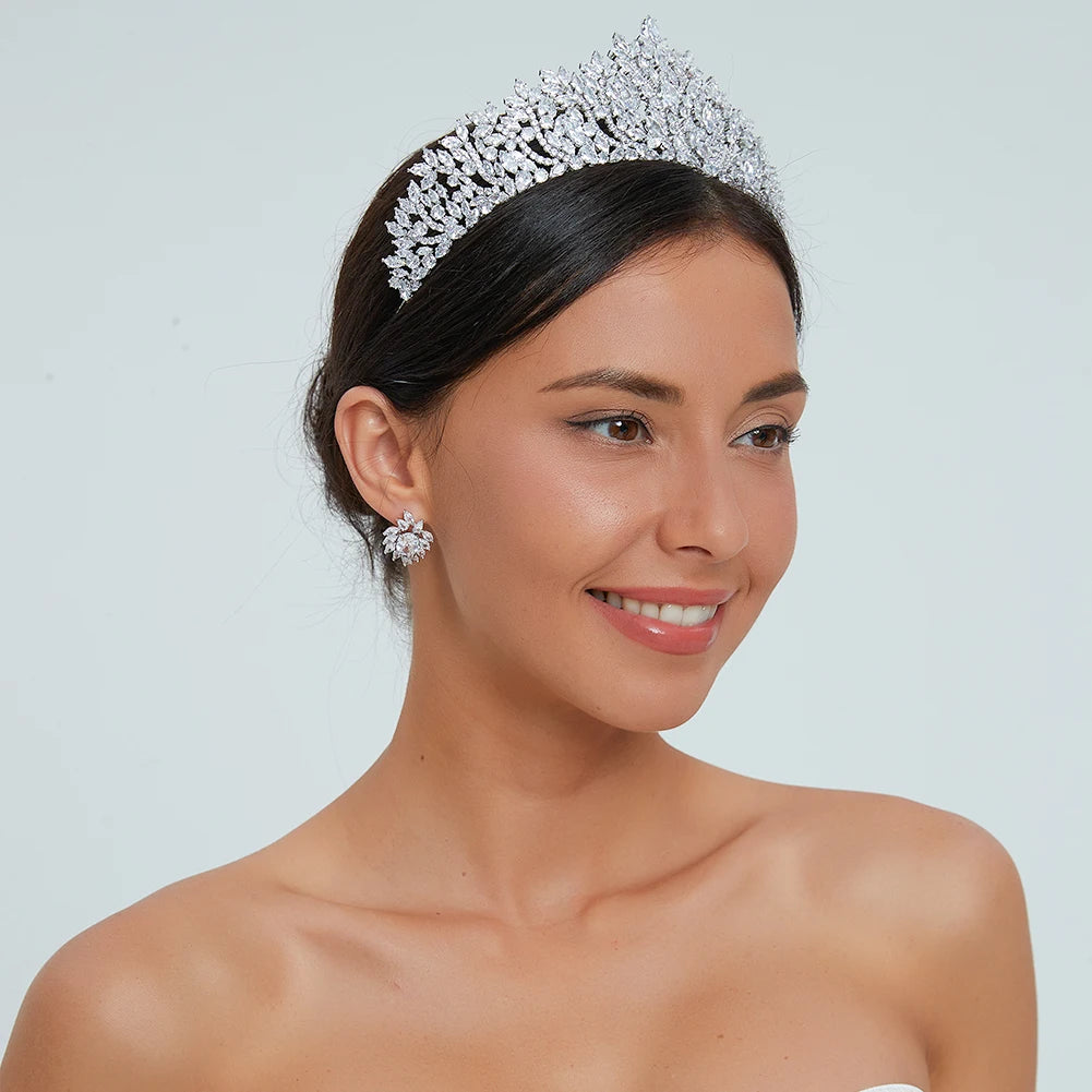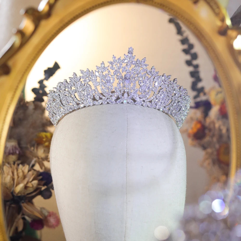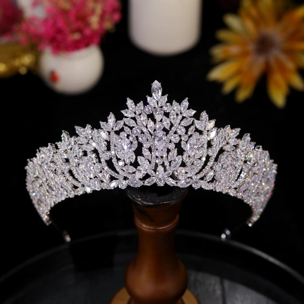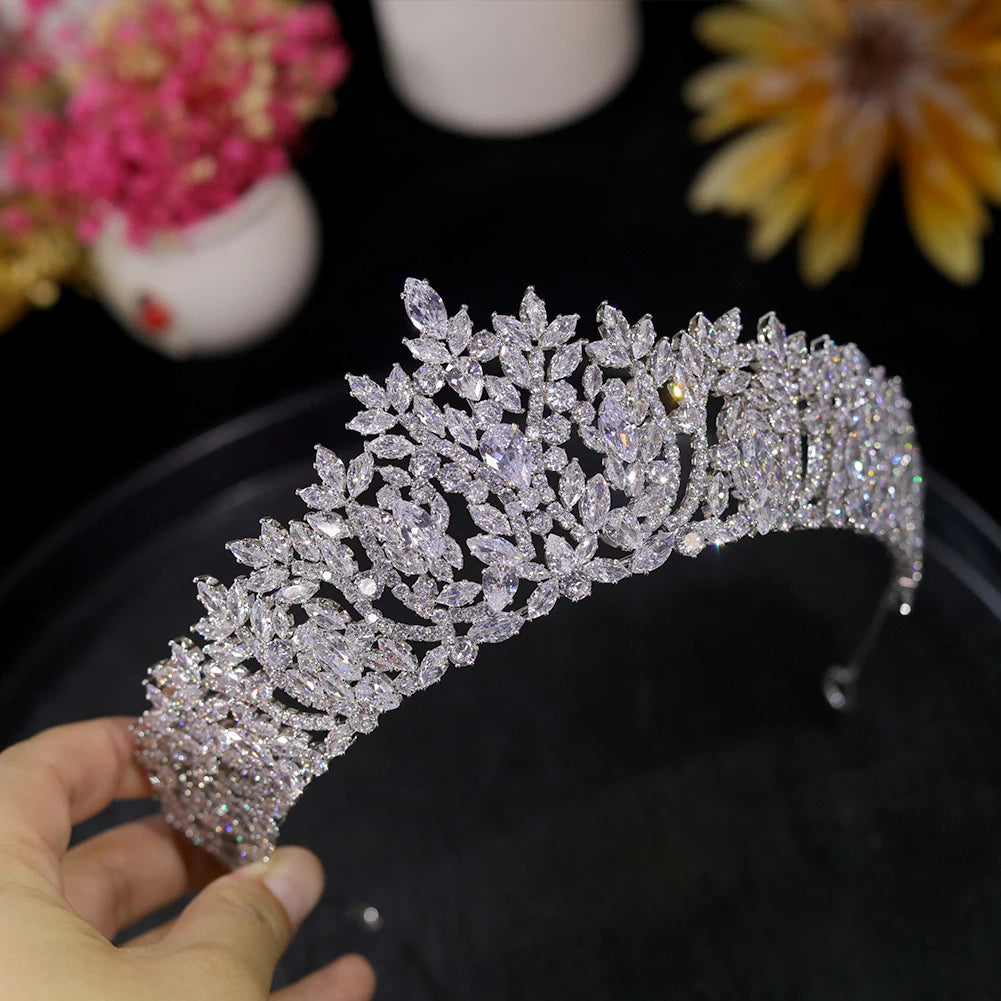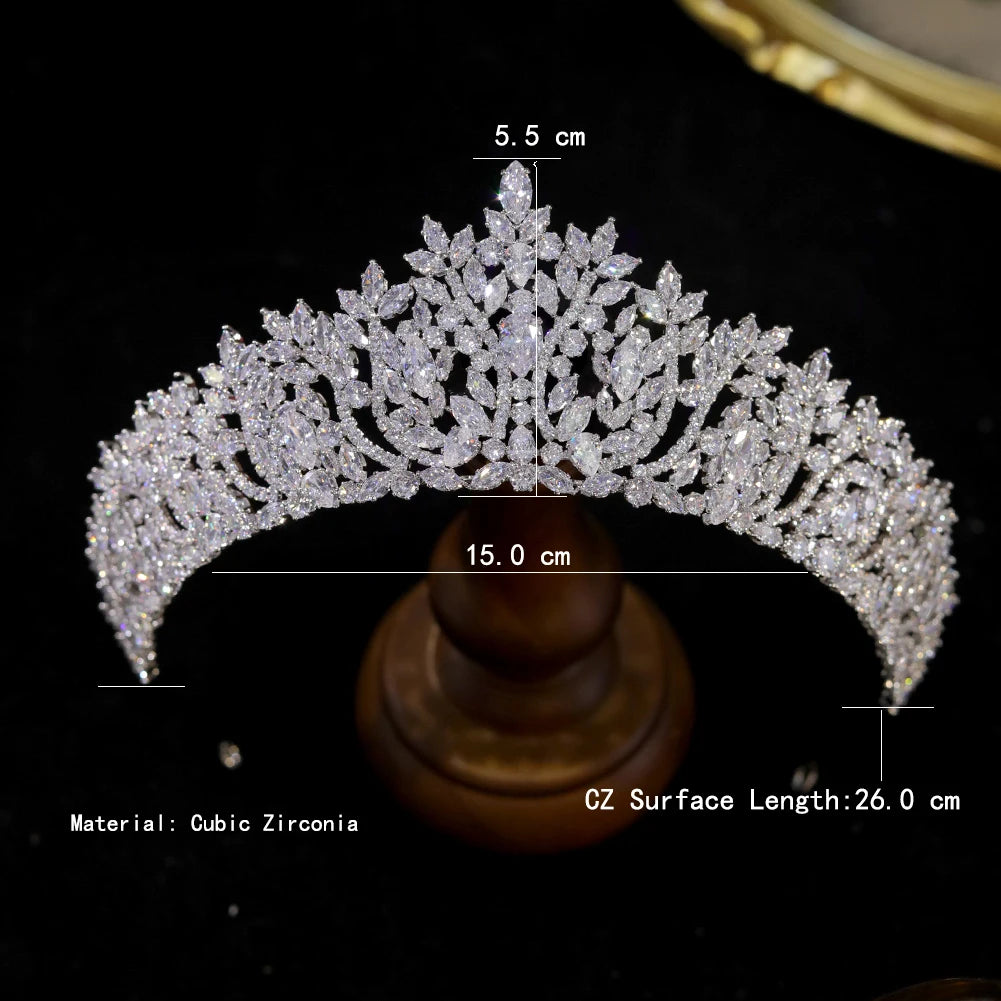 כתר כלה מפואר בגוון כסף עם קריסטלים נוצצים מסוג קוביק זירקוניה בעבודת יד, בעיצוב מלכותי ומרשים שישלים את מראה הכלה המושלם. מתאים גם למסיבות נשף, ערב גאלה, ימי הולדת נוצצים ועוד.