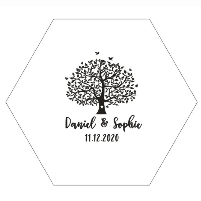 קופסת טבעות שקופה בעיצוב משושה, עם מסגרת עדינה וגימור אלגנטי, שומרת על הטבעות ומוסיפה טאץ' יוקרתי לצילומים ולרגע ההצעה או החלפת הטבעות.