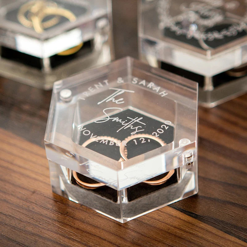 קופסת טבעות אקרילית שקופה בצורת משושה – אלגנטיות בזוג