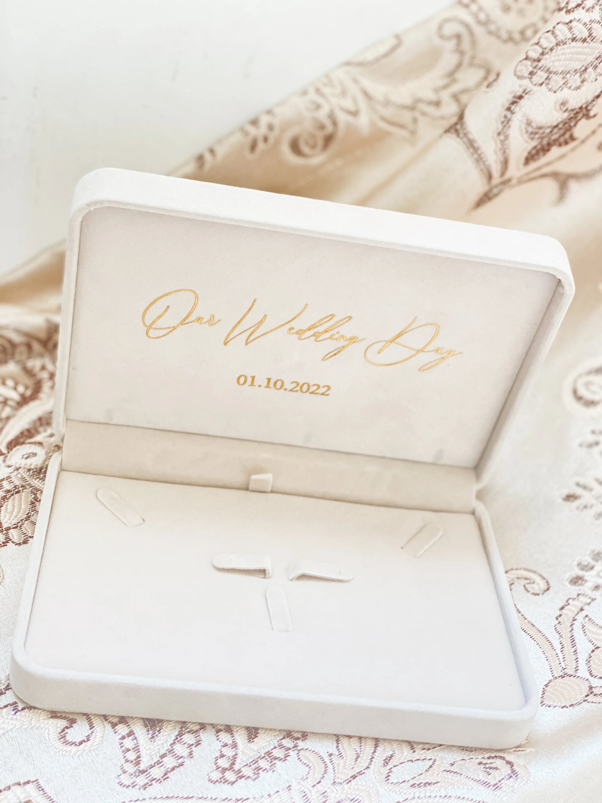 קופסת התכשיטים הזו, מבד פלנל רך בעיצוב אישי, מוסיפה סטייל, רגש ונגיעה יוקרתית לכל פריט קטן.
