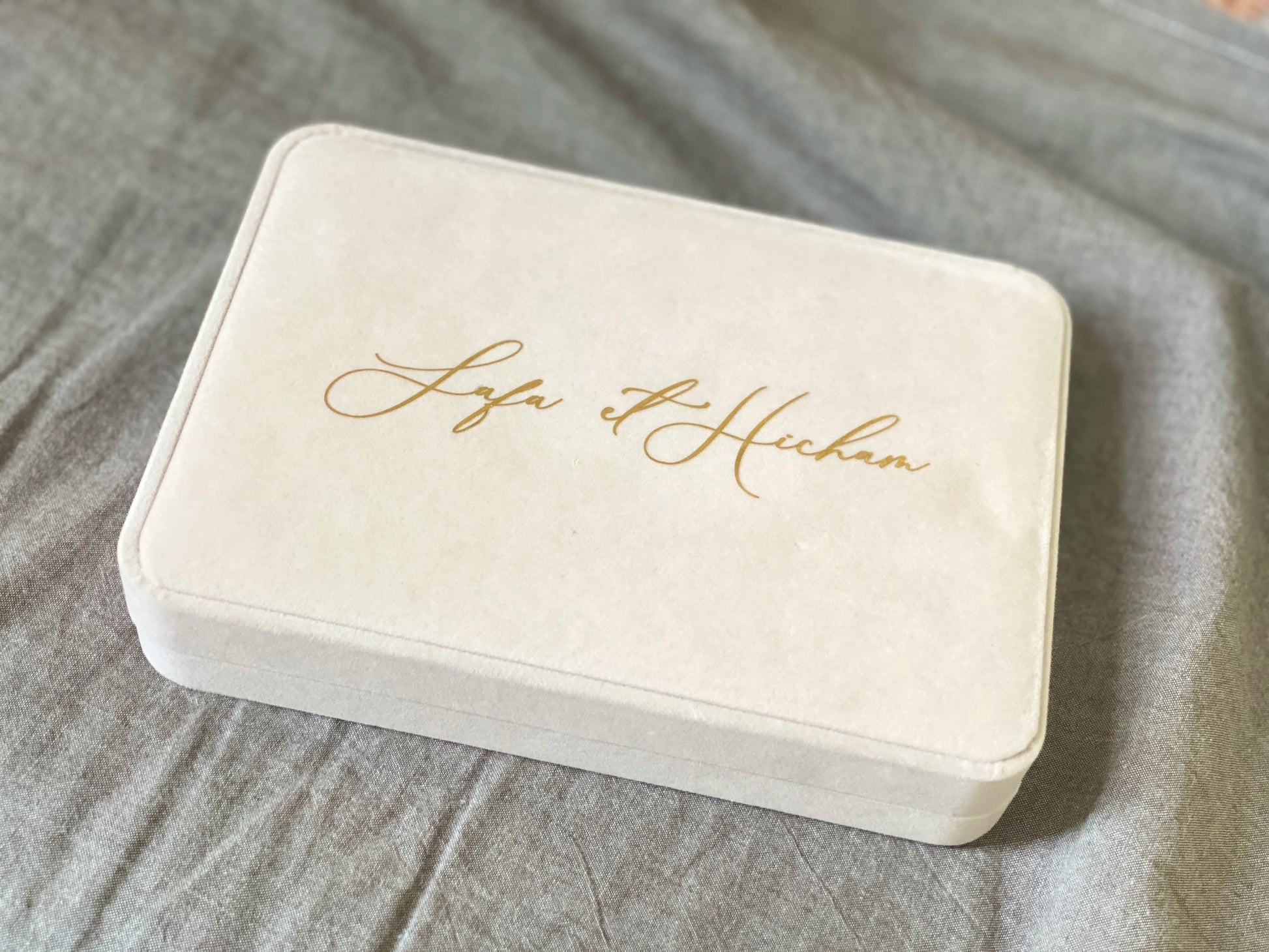קופסת תכשיטים אישית מבד פלנל – מתנה מושלמת לכלה או למי שאת אוהבת