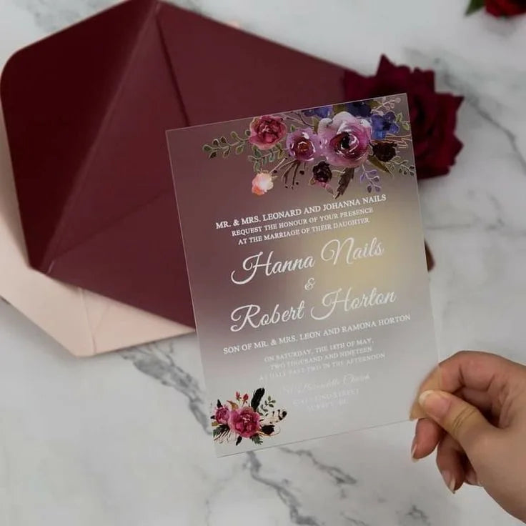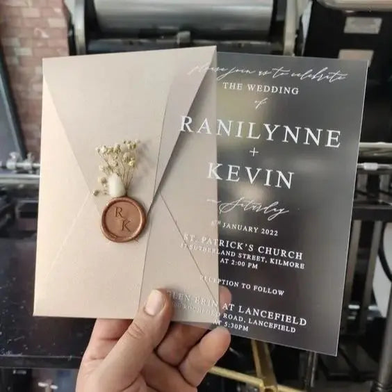 ההזמנות האלו, עשויות אקריל מט בגימור חלבִי, מודפסות בדיו לבן בעיצוב אישי – קו נקי, מודרני ואלגנטי שמתאים לחתונה, מסיבת אירוסין, בר/בת מצווה, אירוע עסקי ועוד.