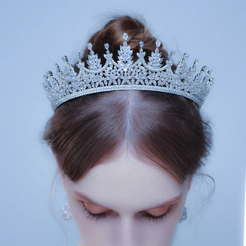 כתר כלה מהפנט בעיצוב קלאסי, משובץ בקריסטלים מנצנצים מסוג קוביק זירקוניה איכותיים. עם קוטר של 13.5 ס"מ וגובה של 5 ס"מ – זהו תכשיט ראש עוצר נשימה שישדרג כל תסרוקת לערב בלתי נשכח.