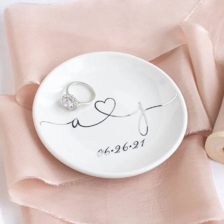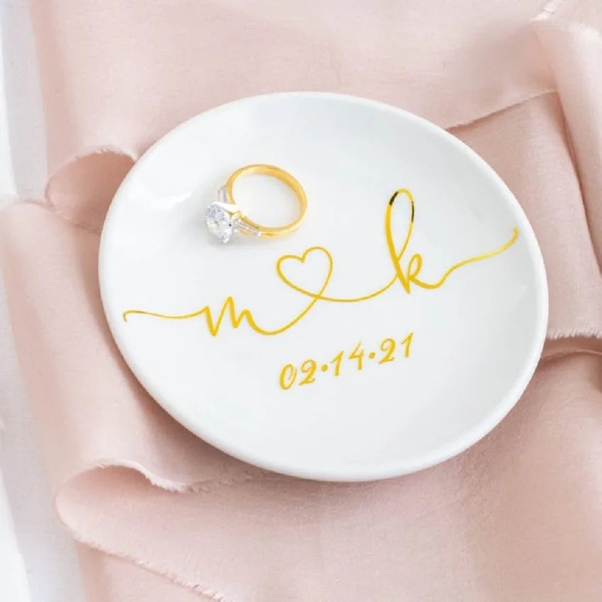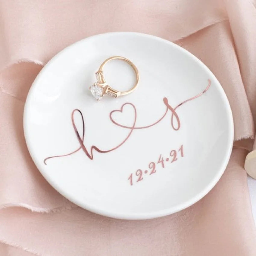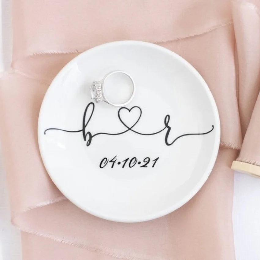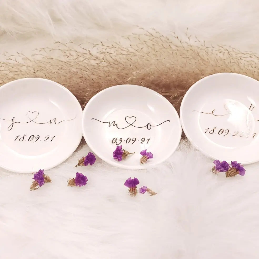 קערית טבעות קרמית בעיצוב אלגנטי וייחודי עם חריטה אישית – מושלמת לשמירה על טבעות הנישואין, טבעת האירוסין או כמתנה מרגשת לכלות, שושבינות וחברות קרובות.