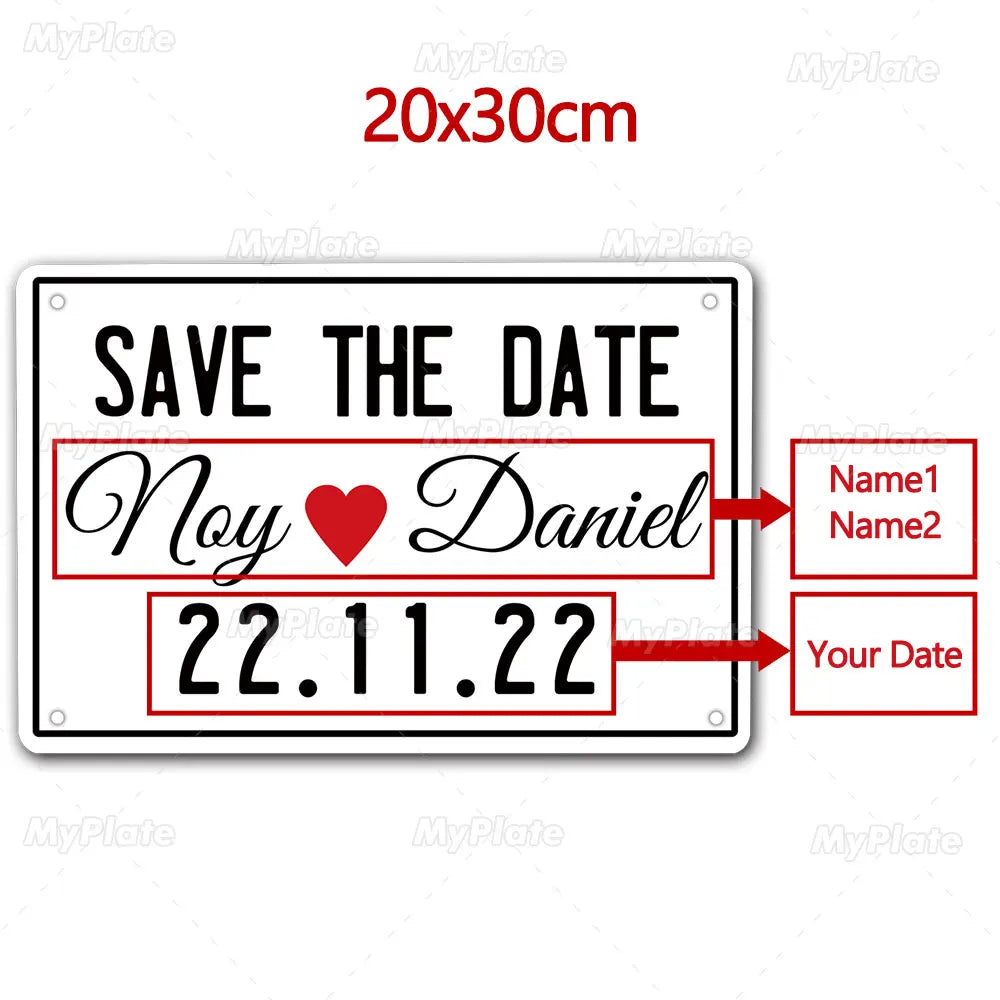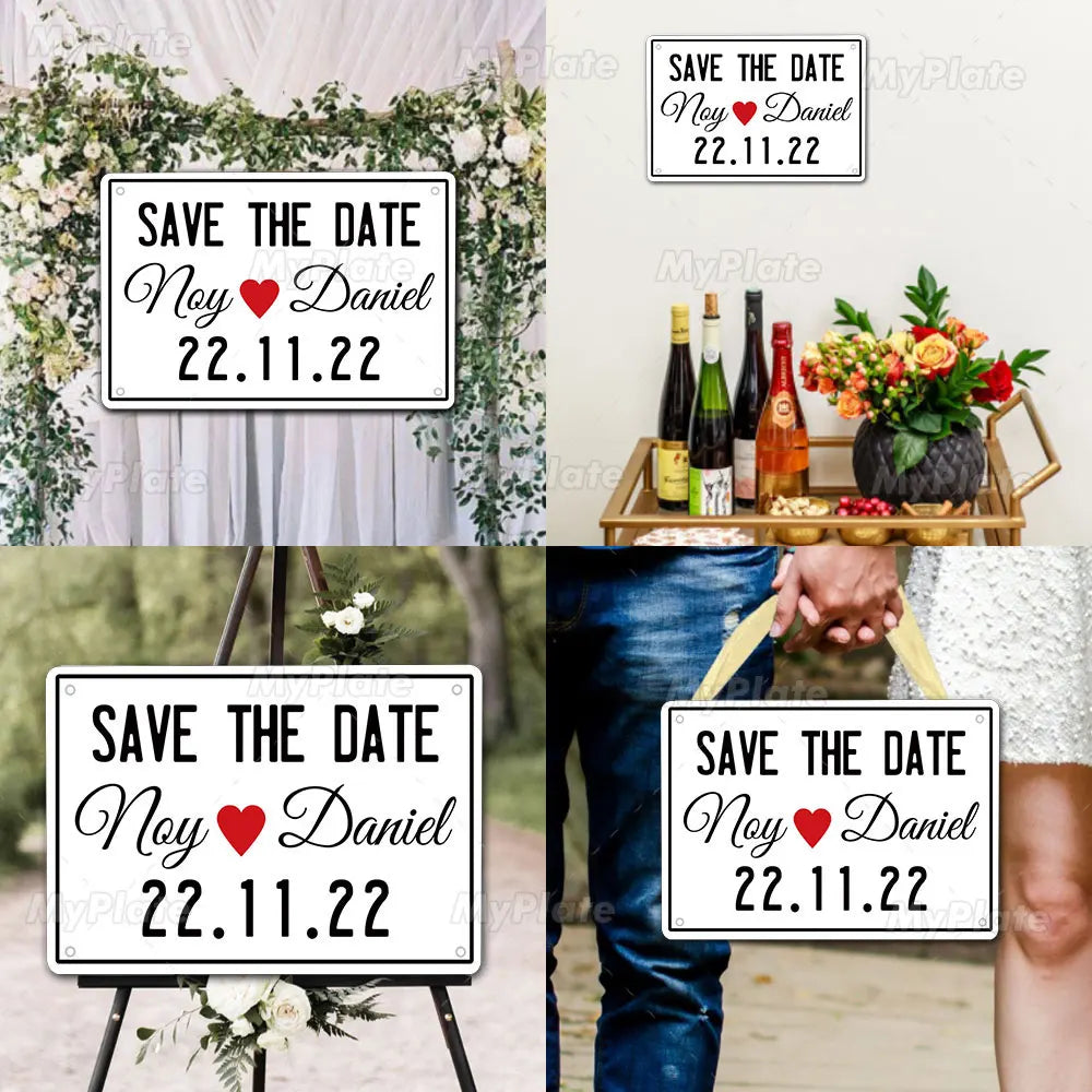שלט מתכתי בעיצוב אישי – Save The Date בסטייל נוסטלגי